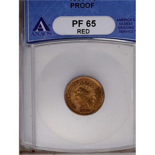 <B>1880<1C> PR65 Red ANACS.</B></I> Sharply struck with mildly reflective fields and attractive coloration. Other than a small mint-made lint mark in the upper left obverse field, the proof surfaces are virtually distraction-free. Fully Red Gems from this issue are scarce and eagerly sought.