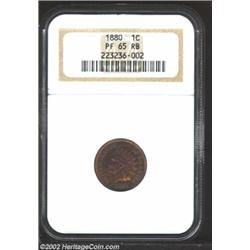 1880 1C PR65 Red and Brown NGC. Rich magenta and brick-red overtones primarily affect the obverse.Fr
