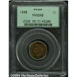 <B>1880<1C> PR65 Red and Brown PCGS.</B></I> This is an attractive Gem with more red than brown color. The surfaces display an attractive blend of deep orange and lighter yellow color with splashes of iridescent toning. Very slight cameo contrast adds to the overall eye appeal of this example. <BR><BR><B>Important notice:</B> Heritage usually auctions material at the rate of 200-250 lots per hour. On some occasions eBay Live bid software or the Internet may not be able to keep up with the pace of the auction. We recommend placing a realistic absentee bid now as insurance to avoid disappointment. Occasionally the auctioneer may eliminate or reject an eBay Live bid, and the auctioneer may also reopen a lot after the close of the eBay live bidding (usually because we missed an audience bid), and may reject your bid even if it shows you as the winning bidder. By bidding via eBay Live, you agree that Heritage may award the lot to another bidder at its sole discretion under the circumstances described above or any other reasonable circumstances. Since eBay bids are not shown to us until we open the lot on the floor, we treat those bids just like floor bids. In most cases the floor responds before the eBay bid is presented to us, due to Internet lag time, so for consistency we have made it a policy that floor bids are always considered first over tie eBay live bids. Also please note that all Heritage lots purchased through eBay Live carry a 20% Buyer's Premium. Please make sure you read the Terms and Conditions before you bid. </span></font></tr></table></td></tr></table>
