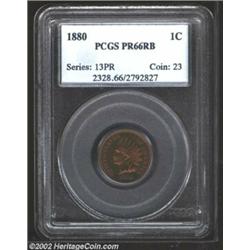 1880 1C PR66 Red and Brown PCGS. Olive, ruby-red, and orange colors interchange across the fields and devices. A razor-sharp Gem with surfaces that are undisturbed by either contact or carbon. From the "Newmismatist" Collection. Important notice: We expect to be auctioning lots at the rate of 200-250 per hour. Sometimes eBay Premier live bid software cannot keep up with that pace, so we strongly recommend that you place a realistic proxy bid now as insurance to avoid disappointment. Also please note that all Heritage/CAA lots purchased through eBay Premier carry a 20% Buyer's Premium. Please make sure you read the Terms and Conditions.