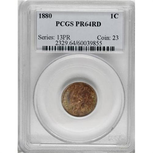 <B>1880 1C PR64 Red PCGS.</B></I> PCGS Population (48/86). NGC Census: (14/34). Mintage: 3,955. Numismedia Wsl. Price for NGC/PCGS coin in PR64: $360. (#2329)<BR><BR><B>Coin Engraver:</B> James B. Longacre<BR><BR><b>Shipping:</b> Coins & Currency (<a target="_blank" href="http://www.heritageauctions.com/common/shipping.php">view shipping information</a>)
