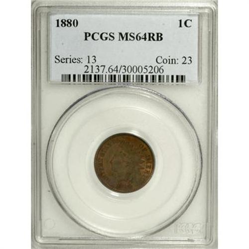 <B>1880 1C MS64 Red and Brown PCGS.</B></I> PCGS Population (194/43). NGC Census: (160/95). Mintage: 38,964,956. Numismedia Wsl. Price for NGC/PCGS coin in MS64: $171. (#2137)<BR><BR><B>Coin Engraver:</B> James B. Longacre<BR><BR><b>Shipping:</b> Coins & Currency (<a target="_blank" href="http://www.heritageauctions.com/common/shipping.php">view shipping information</a>)