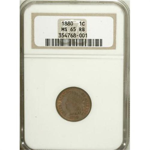 <B>1880 1C MS65 Red and Brown NGC.</B></I> NGC Census: (80/16). PCGS Population (44/0). Mintage: 38,964,956. Numismedia Wsl. Price for NGC/PCGS coin in MS65: $260. (#2137)<BR><BR><B>Coin Engraver:</B> James B. Longacre<BR><BR><b>Shipping:</b> Coins & Currency (<a target="_blank" href="http://www.heritageauctions.com/common/shipping.php">view shipping information</a>)