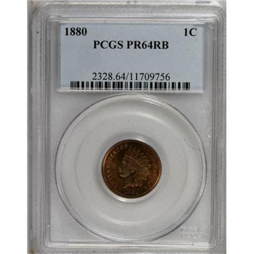 <B>1880 1C PR64 Red and Brown PCGS.</B></I> PCGS Population (187/78). NGC Census: (84/96). Mintage: 3,955. Numismedia Wsl. Price for NGC/PCGS coin in PR64: $276. (#2328)<BR><BR><B>Coin Engraver:</B> James B. Longacre<BR><BR><b>Shipping:</b> Coins & Currency (<a target="_blank" href="http://www.heritageauctions.com/common/shipping.php">view shipping information</a>)