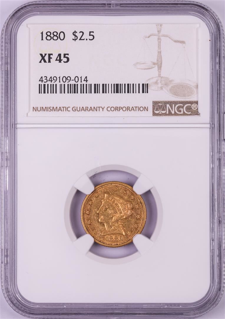 One 1880 $2 1/2 Liberty Head Quarter Eagle Gold Coin NGC XF45. NGC Certified.
