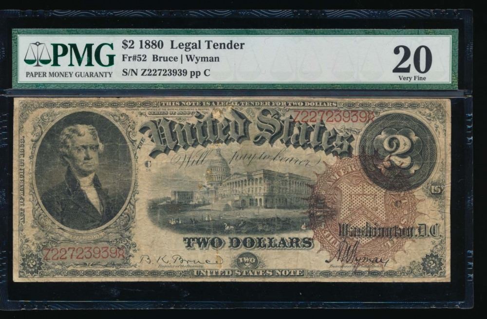One 1880 $2 Legal Tender Note PMG 20.