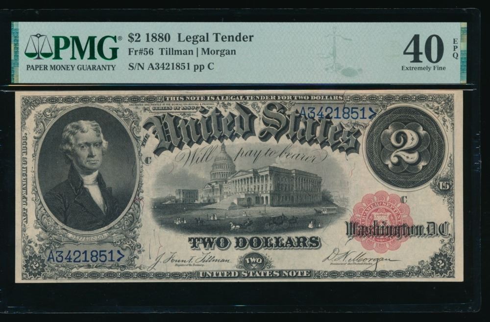 One 1880 $2 Legal Tender Note PMG 40EPQ.