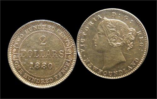 1880 $2 Nfld Gold ICCS AU55, Well struck with some nice lustre. The key date of this series.