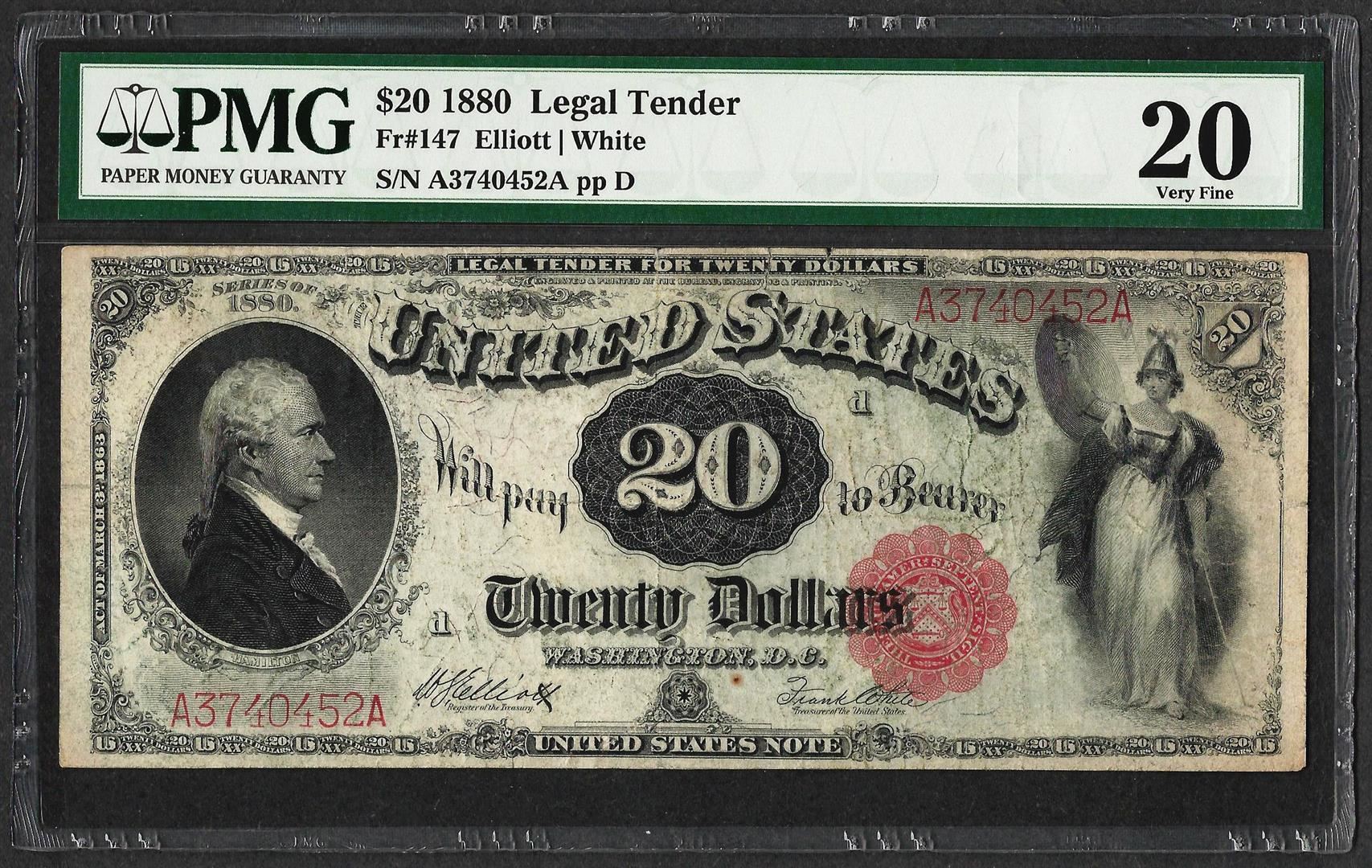 One 1880 $20 Legal Tender Note Fr.147 PMG Very Fine 20. PMG Certified.