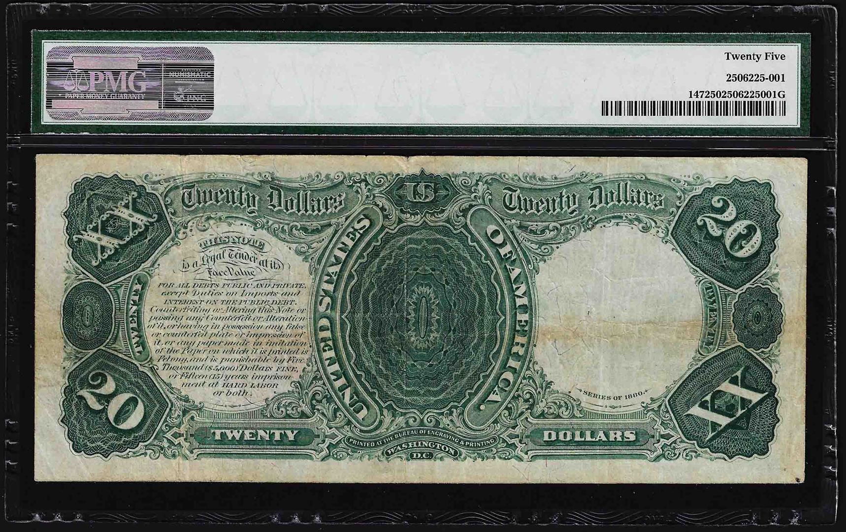 One 1880 $20 Legal Tender Note Fr. 147 PMG Very Fine 25. PMG Certified.