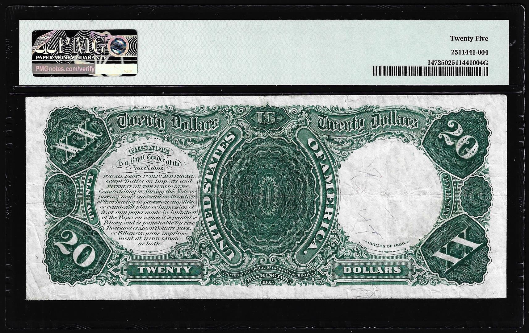 One 1880 $20 Legal Tender Note Fr.147 PMG Very Fine 25. PMG Certified.