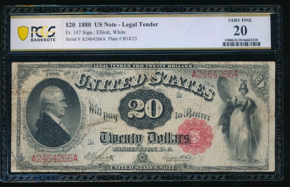One 1880 $20 Legal Tender Note PCGS 20.