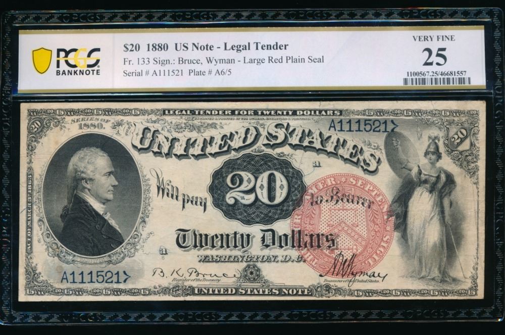 One 1880 $20 Legal Tender Note PCGS 25.