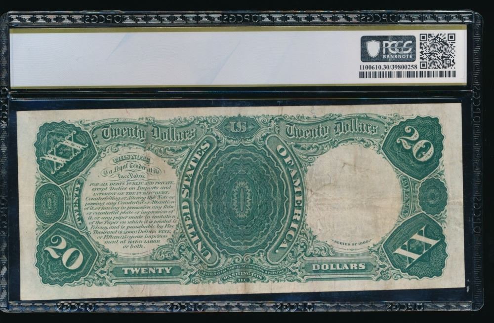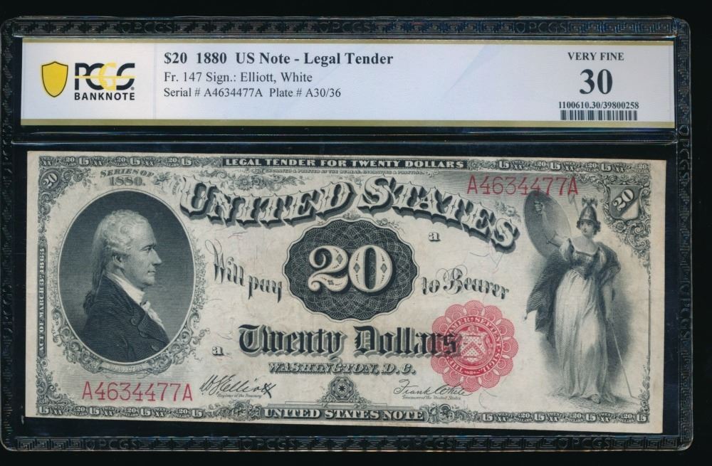 One 1880 $20 Legal Tender Note PCGS 30.
