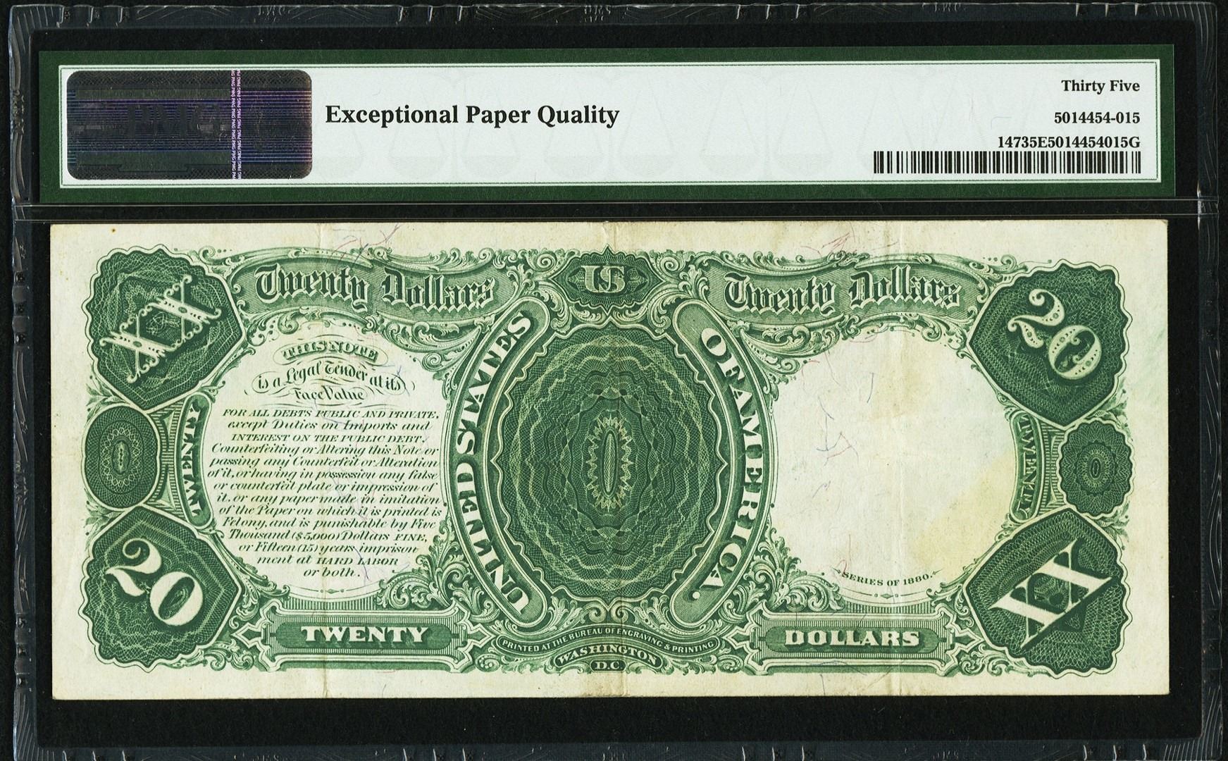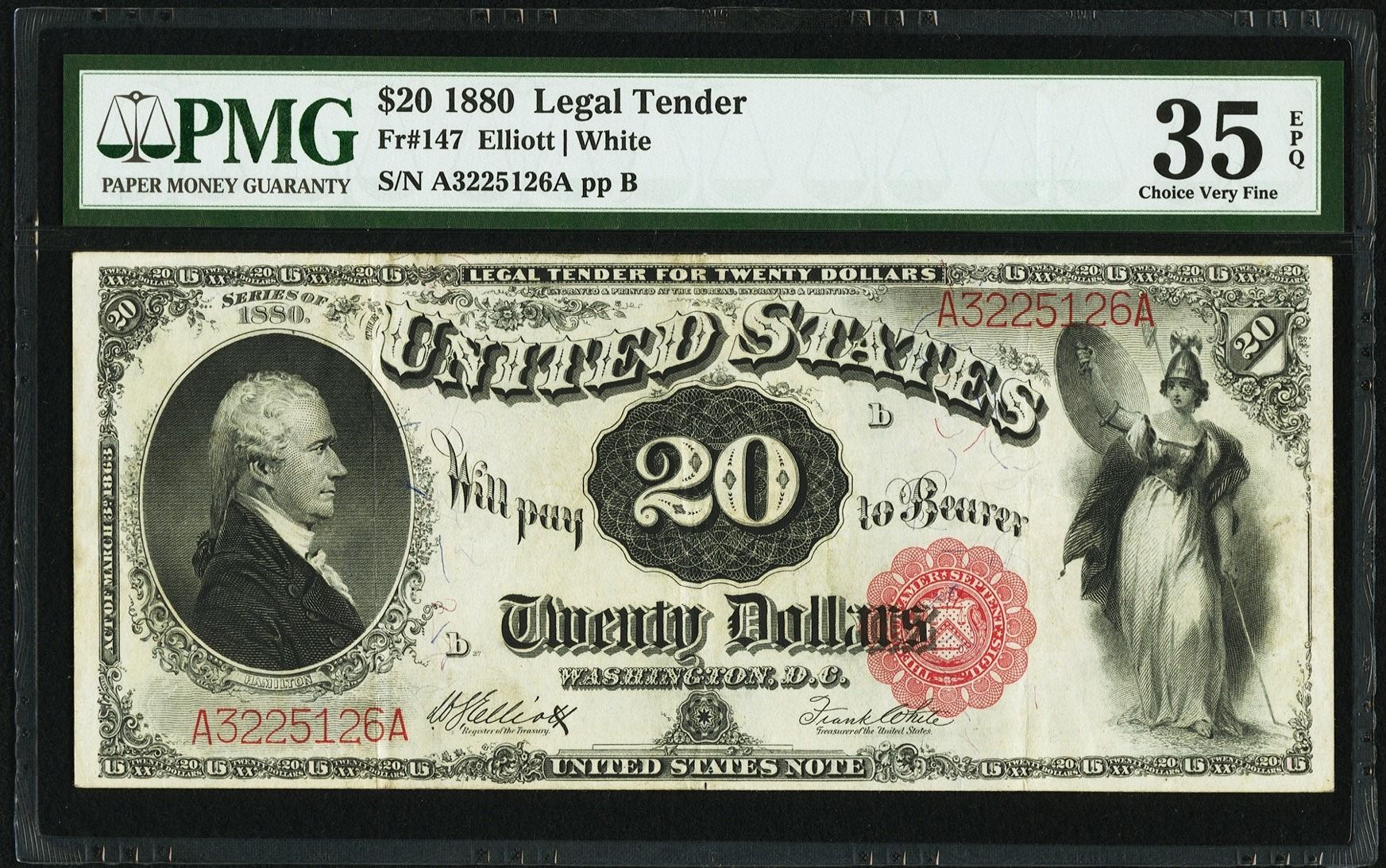 One 1880 $20 Legal Tender Note PMG 35EPQ.