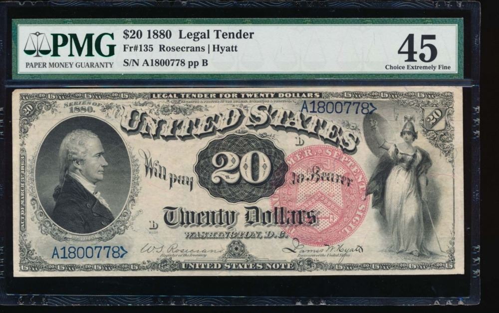 One 1880 $20 Legal Tender Note PMG 45.
