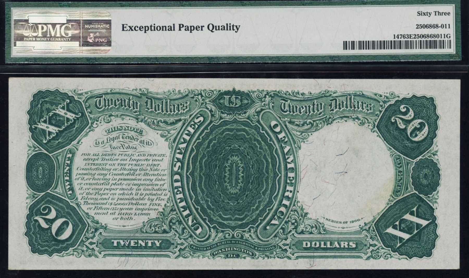 One 1880 $20 Legal Tender Note PMG 63EPQ.
