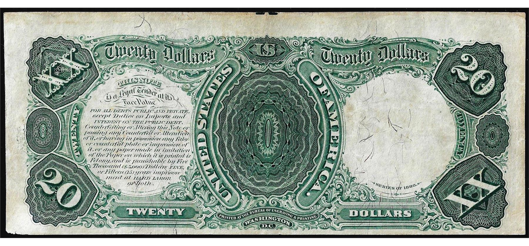 One 1880 $20 Legal Tender Note.