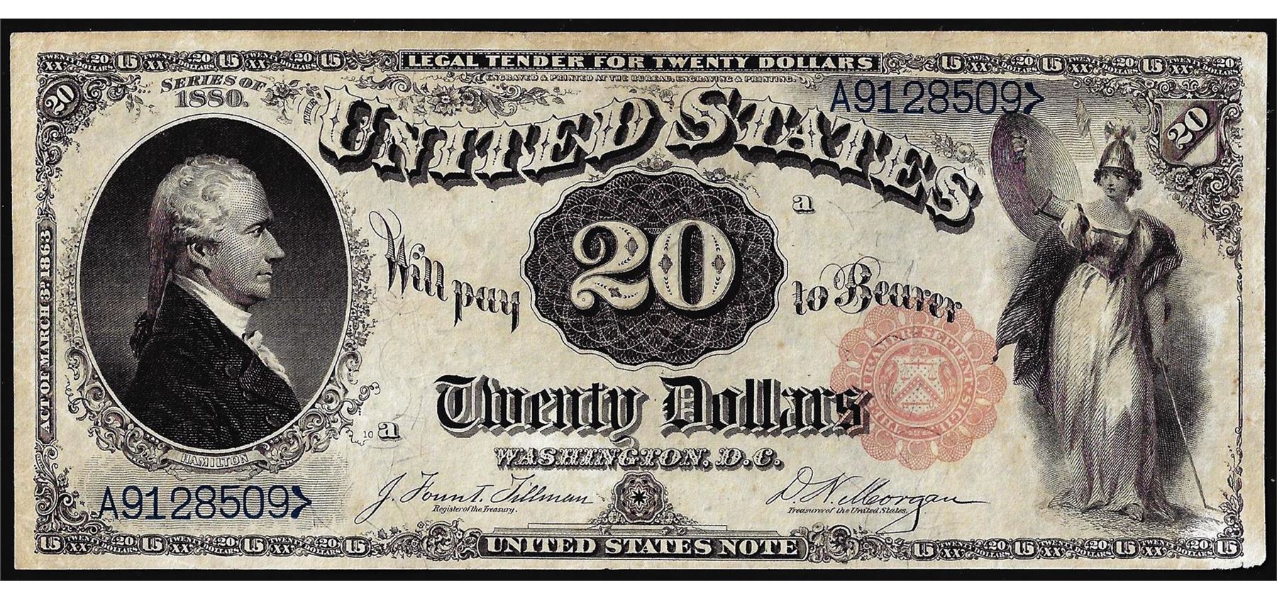 One 1880 $20 Legal Tender Note.