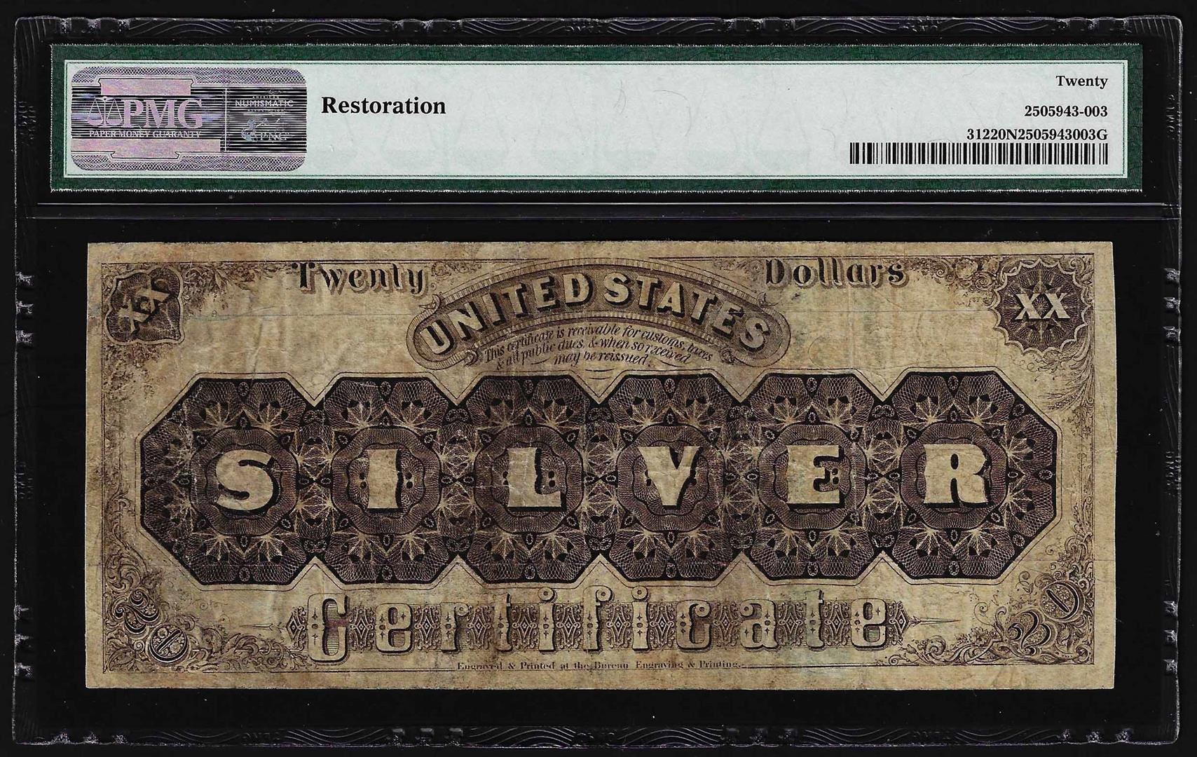 One 1880 $20 Silver Certificate Note Fr. 312 PMG Very Fine 20 Net. PMG Certified.