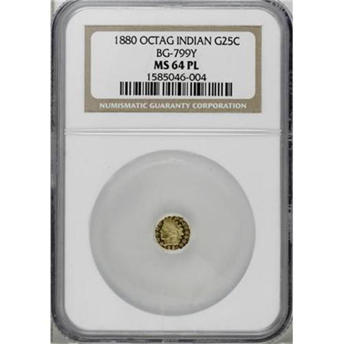 <B>1880 25C BG-799 Y MS64 Prooflike NGC.</B></I> NGC Census: (0/0). PCGS Population (0/0). (#710651)<BR><BR><b>Shipping:</b> Coins & Currency (<a target="_blank" href="http://www.heritageauctions.com/common/shipping.php">view shipping information</a>)