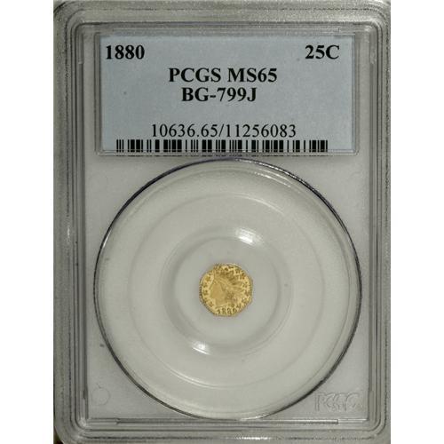 1880 25C Indian Octagonal 25 Cents, BG-799J, R.3, MS65