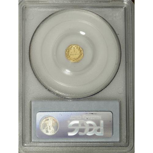 <B>1880 25C Indian Octagonal 25 Cents, BG-799J, R.3, MS65 PCGS.</B></I> A moderately mirrored green-gold Gem with unperturbed fields and a crisp strike. PCGS has certified only five pieces finer (4/07).<BR><BR><b>Shipping:</b> Coins & Currency (<a target="_blank" href="http://www.heritageauctions.com/common/shipping.php">view shipping information</a>)