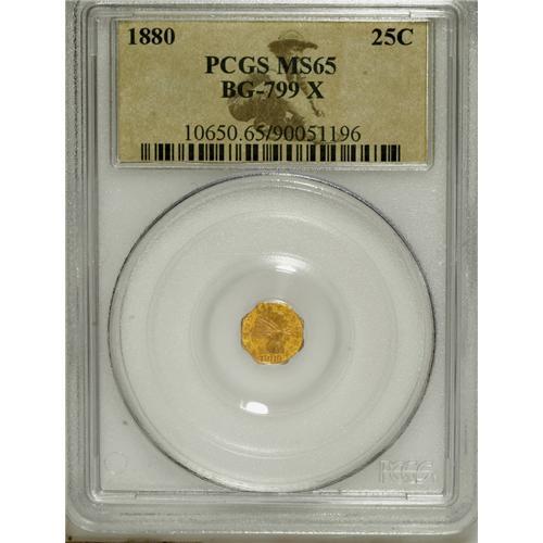 1880 25C Indian Octagonal 25 Cents, BG-799X, R.3, MS65