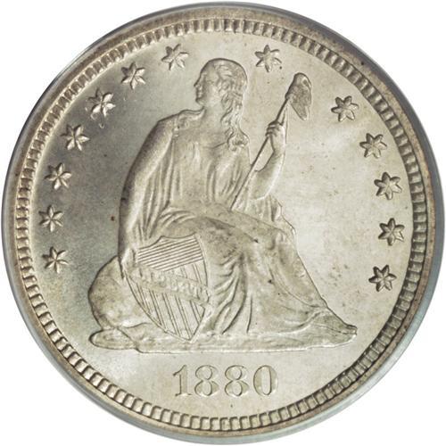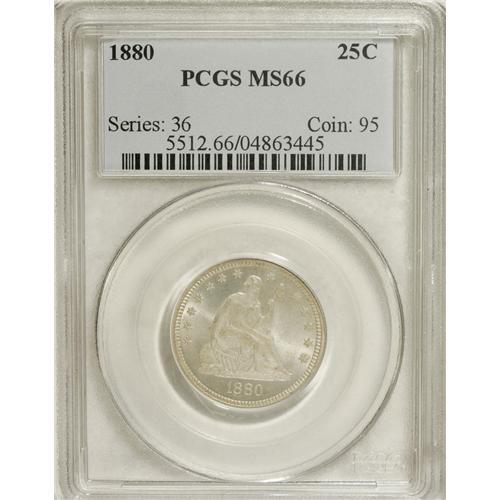 1880 25C MS66 PCGS. The 1880 quarter dollar, with a mi