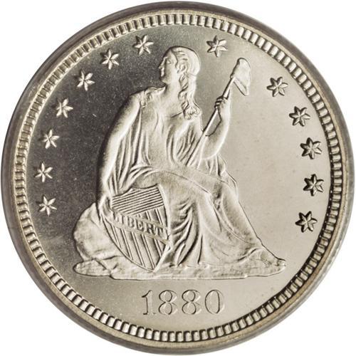 <B>1880 25C PR66 Cameo PCGS.</B></I> Type One Reverse. Briggs 1-B. This variety is identified by a die lump on the left side of the reverse shield. This impressive Premium Gem example displays radiantly frosted devices and contrasting deep mirror fields. The striking detail is exacting on all of the design elements. Untoned and carefully preserved; a couple of faint blemishes between star 13, Liberty's foot, and the date are all that prevent an even loftier grade designation. Population: 11 in 66 Cameo, 5 finer (2/07).<BR><BR><b>Shipping:</b> Coins & Currency (<a target="_blank" href="http://www.heritageauctions.com/common/shipping.php">view shipping information</a>)