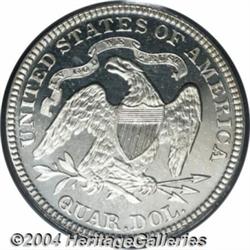 <table><tr><td><table><tr><td>1880 25C PR66 Deep Cameo PCGS. Briggs 2-B. Type One Reverse. A Deep Cameo proof representative of this always-popular date from the end of the Seated Quarter series, both sides are essentially devoid of toning and blemishes. A little light, mottled, opaque-gray haziness is seen on the reverse, but the contrast is no less bold on that side than it is on the bright and flashy obverse. Sharply struck over all of the important elements of the design. Population: 1 in 66 Deep Cameo, 2 finer (2/04). <BR><BR><B>Important notice:</B> Heritage usually auctions material at the rate of 200-250 lots per hour. On some occasions eBay Live bid software or the Internet may not be able to keep up with the pace of the auction. We recommend placing a realistic absentee bid now as insurance to avoid disappointment. Occasionally the auctioneer may eliminate or reject an eBay Live bid, and the auctioneer may also reopen a lot after the close of the eBay live bidding (usually because we missed an audience bid), and may reject your bid even if it shows you as the winning bidder. By bidding via eBay Live, you agree that Heritage may award the lot to another bidder at its sole discretion under the circumstances described above or any other reasonable circumstances. Since eBay bids are not shown to us until we open the lot on the floor, we treat those bids just like floor bids. In most cases the floor responds before the eBay bid is presented to us, due to Internet lag time, so for consistency we have made it a policy that floor bids are always considered first over tie eBay live bids. Also please note that all Heritage lots purchased through eBay Live carry a 20% Buyer's Premium. Please make sure you read the Terms and Conditions before you bid. <BR><BR><B>IMPORTANT ANNOUNCEMENT ABOUT RESERVES:</B> Heritage now divulges all reserves on its web site 7 days before every auction. If you want to know whether the reserve on this lot has been met, and if not, what the reserve amount is, please visit this lot page on the HeritageCoin.com web site, or email: bid@HeritageGalleries.com </span></font></td></tr></table></td></tr></table>
