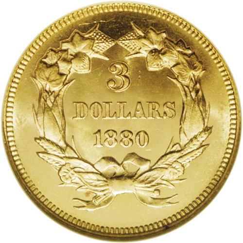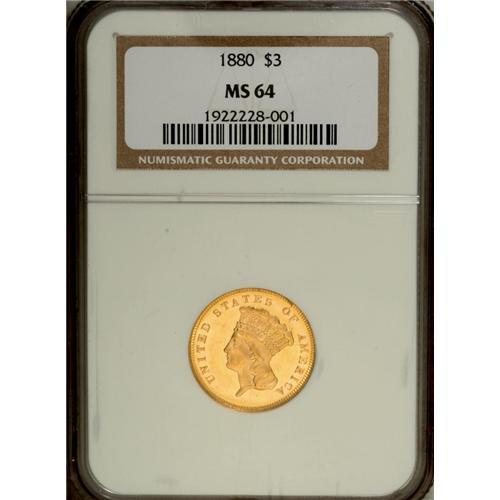 1880 $3 MS64 NGC. This is a beautiful, well struck, ca