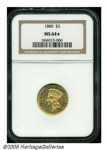 1880 $3 MS64 S NGC. In all grades combined, NGC h