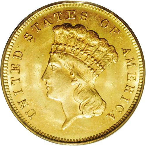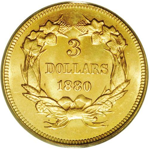 1880 $3 MS65 PCGS. Produced to the extent of only 1,00 1880[$3] MS65 PCGS.