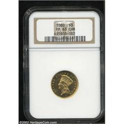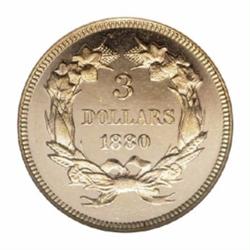 <table><tr><td><TABLE cellSpacing=0 cellPadding=0 width="100%" bgColor=#000000 border=0><TBODY> <TR><TD width="100%"><TABLE cellSpacing=1 cellPadding=3 width="100%" border=0><TBODY><TR><TD width="100%" bgColor=#79735c><FONT face=arial color=#ffffff size=3><B>Description</B> </FONT></TD></TR><TR><TD width="100%" bgColor=#ffffff><FONT face=arial size=2><B>1880 $3 PR63 Cameo NGC.</B></I> Only 36 pieces were struck of the 1880 in proof format with an estimated 20 or so coins believed known today in all grades. In order to distinguish genuine proofs from first-strike business strikes, all legitimate proofs have to show the following diagnostics: a rust spot on the hair of Liberty, a vein-like die crack across the nose, and a "teardrop" below the eye. This is a deeply mirrored example that shows a few scuffs and light hairlines in the fields with deeply frosted devices. Population: 2 in 63, 10 finer (7/03). </FONT></TD></TR></TBODY></TABLE></TD></TR></TBODY></TABLE><BR><A name=PricesRealized></A><TABLE cellSpacing=0 cellPadding=0 width="100%" bgColor=#000000 border=0><TBODY><TR><TD width="100%"><TABLE cellSpacing=1 cellPadding=3 width="100%" border=0><TBODY><TR><TD width="100%" bgColor=#79735c><A name=PR><FONT face=arial color=#ffffff size=3><B>Previous Prices from Heritage Auctions</B> </FONT></A></TD></TR><TR><TD bgColor=#f6f6ed>No Prior Data Recorded </TD></TR><TR><TD bgColor=#ffffff><FONT face=arial size=1 ?>PLEASE NOTE: All prices realized reflect the final hammer price PLUS the buyer's premium in auctions that charge a buyer's premium. Each item has a notation at the top of the listing indicating whether that lot included a buyer's premium. Example: A item that sells with a final hammer price of $100 and a 20% buyer's premium will display with a price realized of $120. All information listed is intended to be as accurate as possible, but errors are possible. Please use this guide carefully and inform us of any inaccuracies. </FONT></TD></TR></TBODY></TABLE></TD></TR></TBODY></TABLE><BR><TABLE cellSpacing=0 cellPadding=0 width="100%" bgColor=#000000 border=0><TBODY><TR><TD width="100%"><TABLE cellSpacing=1 cellPadding=3 width="100%" border=0><TBODY><TR><TD width="100%" bgColor=#79735c colSpan=6><FONT face=arial color=#ffffff size=3><B>Price Guide*</B> </FONT></TD></TR><TR bgColor=#f6f6ed><TD align=middle><B>Grade</B> </TD><TD align=middle><B>Coin World<BR>(Trends)</B> </TD><TD align=middle><B>Numismedia<BR>Retail</B> </TD><TD align=middle><B>Numismedia<BR>Wholesale</B> </TD><TD align=middle><B>Coin<BR>Universe</B> </TD><TD align=middle><B>Heritage<BR>Value Index</B> </TD></TR><TR bgColor=#ffffff><TD align=middle>62</TD><TD align=right>---</TD><TD align=right>---</TD><TD align=right>---</TD><TD align=right>---</TD><TD align=right>$6,795.00</TD></TR><TR style="FONT-WEIGHT: bold" bgColor=#cccfdd><TD align=middle>63</TD><TD align=right>---</TD><TD align=right>---</TD><TD align=right>---</TD><TD align=right>---</TD><TD align=right>$8,550.00</TD></TR><TR bgColor=#ffffff><TD align=middle>64</TD><TD align=right>---</TD><TD align=right>---</TD><TD align=right>---</TD><TD align=right>---</TD><TD align=right>$13,050.00</TD></TR><TR bgColor=#ffffff><TD colSpan=6><FONT size=1>*All information listed is intended to be as accurate as possible, but errors are possible. No item may be returned or refused based on this information which is provided as a service to our customers. You should contact each pricing source directly to determine the accuracy of this information. </FONT></TD></TR></TBODY></TABLE></TD></TR></TBODY></TABLE><BR><TABLE cellSpacing=0 cellPadding=0 width="100%" bgColor=#000000 border=0><TBODY><TR><TD width="100%"><TABLE cellSpacing=1 cellPadding=3 width="100%" border=0><TBODY><TR><TD width="100%" bgColor=#79735c><FONT face=arial color=#ffffff size=3><B>Population Guide</B> </FONT></TD></TR><TR bgColor=#ffffff><TD align=middle><!-- Begin Output of Population Grid--><TABLE cellSpacing=0 cellPadding=0 width="100%" border=0><TBODY><TR><TD vAlign=center><TABLE cellSpacing=0 width="100%" border=1 cellsadding="3"><TBODY><TR><TD vAlign=center><TABLE cellSpacing=0 cellPadding=3 width="100%" border=1><TBODY><TR><TD vAlign=center align=middle bgColor=#f0f1e8 colSpan=2 <CENTER><FONT face=Arial size=2><B>PCGS Pop </B></FONT><CENTER></CENTER></TD><TD vAlign=center align=middle bgColor=#f0f1e8 colSpan=2><CENTER><FONT face=Arial size=2><B>NGC Pop</B></CENTER></FONT></TD></TR><TR><TD vAlign=center><FONT face=Arial size=2>(63)</FONT> </TD><TD vAlign=center align=right><FONT face=Arial size=2>0</FONT> </TD><TD vAlign=center><FONT face=Arial size=2>(63)</FONT> </TD><TD vAlign=center align=right><FONT face=Arial size=2>2</FONT> </TD></TR><TR><TD vAlign=center><FONT face=Arial size=2>(>63)</FONT> </TD><TD vAlign=center align=right><FONT face=Arial size=2>2</FONT> </TD><TD vAlign=center><FONT face=Arial size=2>(>63)</FONT> </TD><TD vAlign=center align=right><FONT face=Arial size=2>10</FONT> </TD></TR></TBODY></TABLE></TD></TR></TBODY></TABLE></TD></TR></TBODY></TABLE><!-- End Output of Population Grid--></TD></TR></TBODY></TABLE></TD></TR></TBODY></TABLE><BR><TABLE cellSpacing=0 cellPadding=0 width="100%" bgColor=#000000 border=0><TBODY><TR> Important notice: Heritage usually auctions material at the rate of 200-250 lots per hour. On some occasions eBay Live bid software or the Internet may not be able to keep up with the pace of the auction. We recommend placing a realistic absentee bid now as insurance to avoid disappointment. Occasionally the auctioneer may eliminate or reject an eBay Live bid, and the auctioneer may also reopen a lot after the close of the eBay live bidding (usually because we missed an audience bid), and may reject your bid even if it shows you as the winning bidder. By bidding via eBay Live, you agree that Heritage may award the lot to another bidder at its sole discretion under the circumstances described above or any other reasonable circumstances. Also please note that all Heritage l