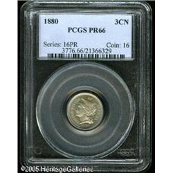 <B>1880 3CN PR66 PCGS.</B></I> The Proof designation is based on the sharpness of the design features, which are all fully struck. The fields are lightly reflective with attractive nickel-gray color.<BR><I>From The Mike Jacobson Collection.</B></I> Lot:5751