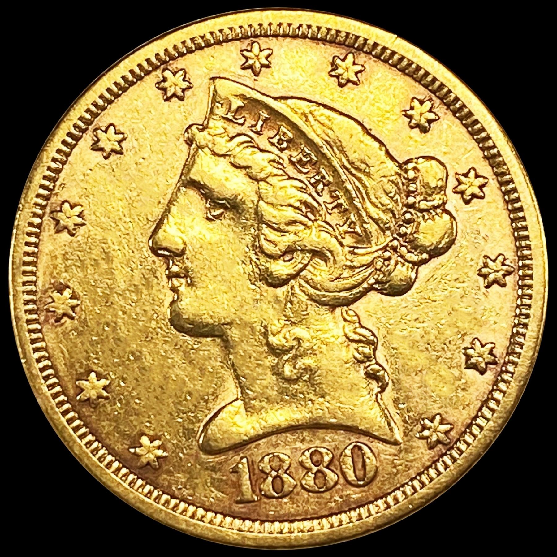 1880 $5 Gold Half Eagle ABOUT UNCIRCULATED