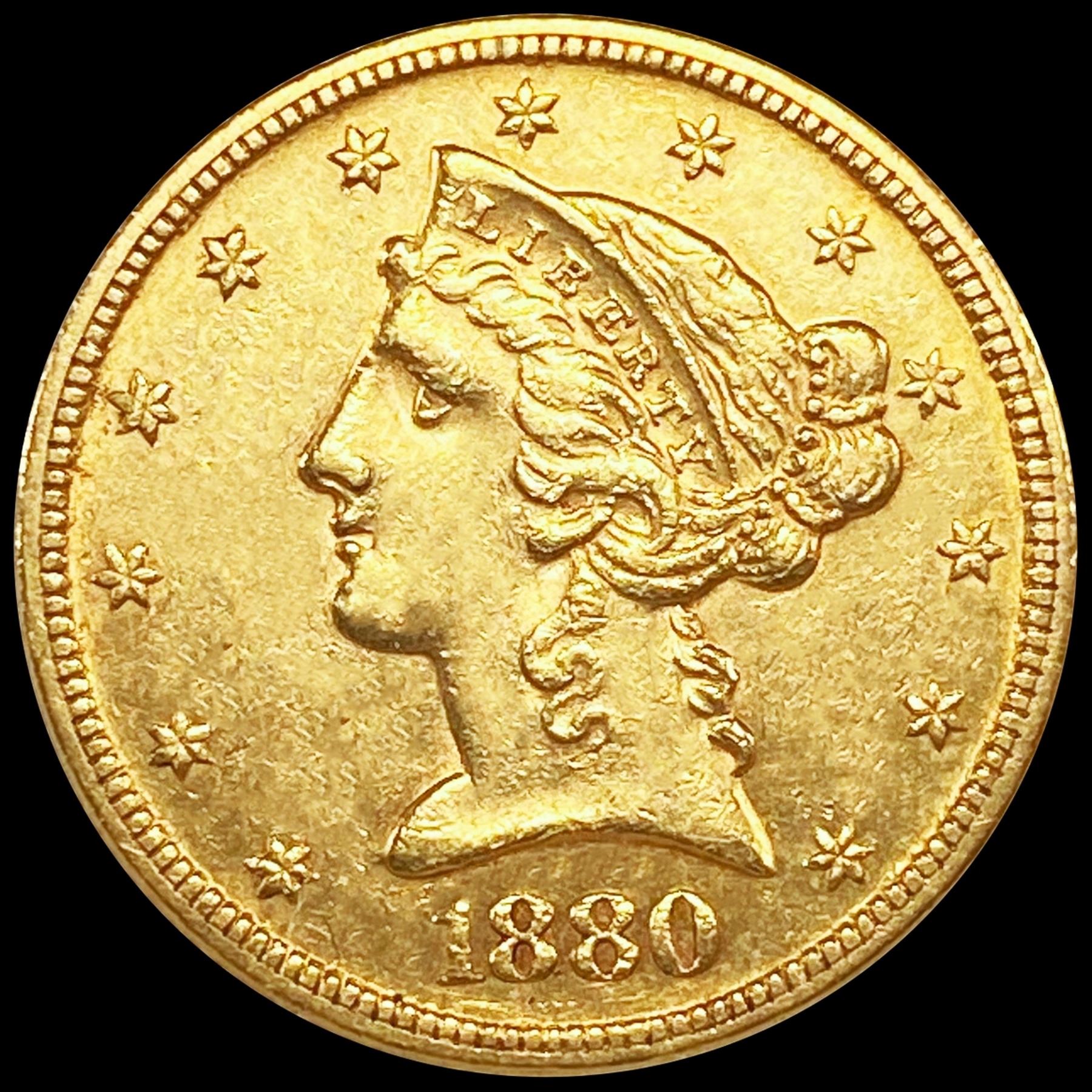 1880 $5 Gold Half Eagle CLOSELY UNCIRCULATED
