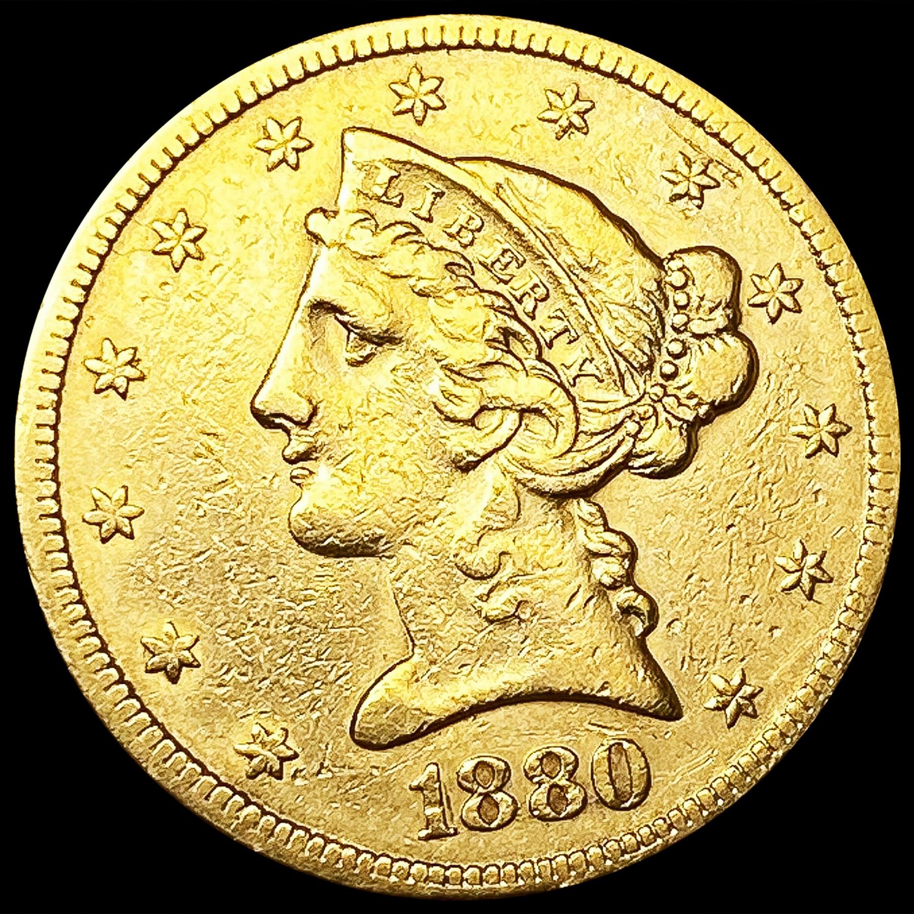 1880 $5 Gold Half Eagle CLOSELY UNCIRCULATED
