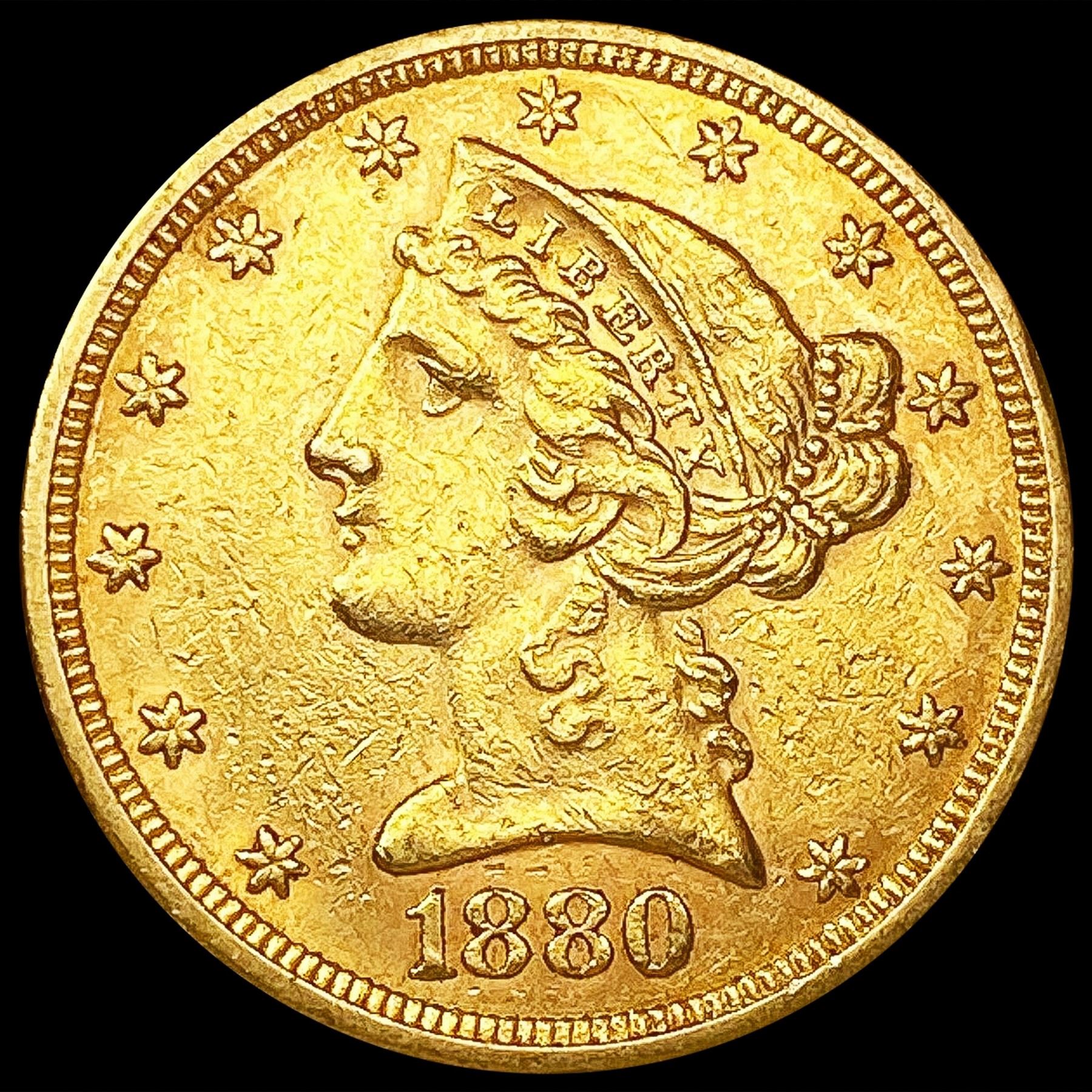 1880 $5 Gold Half Eagle CLOSELY UNCIRCULATED