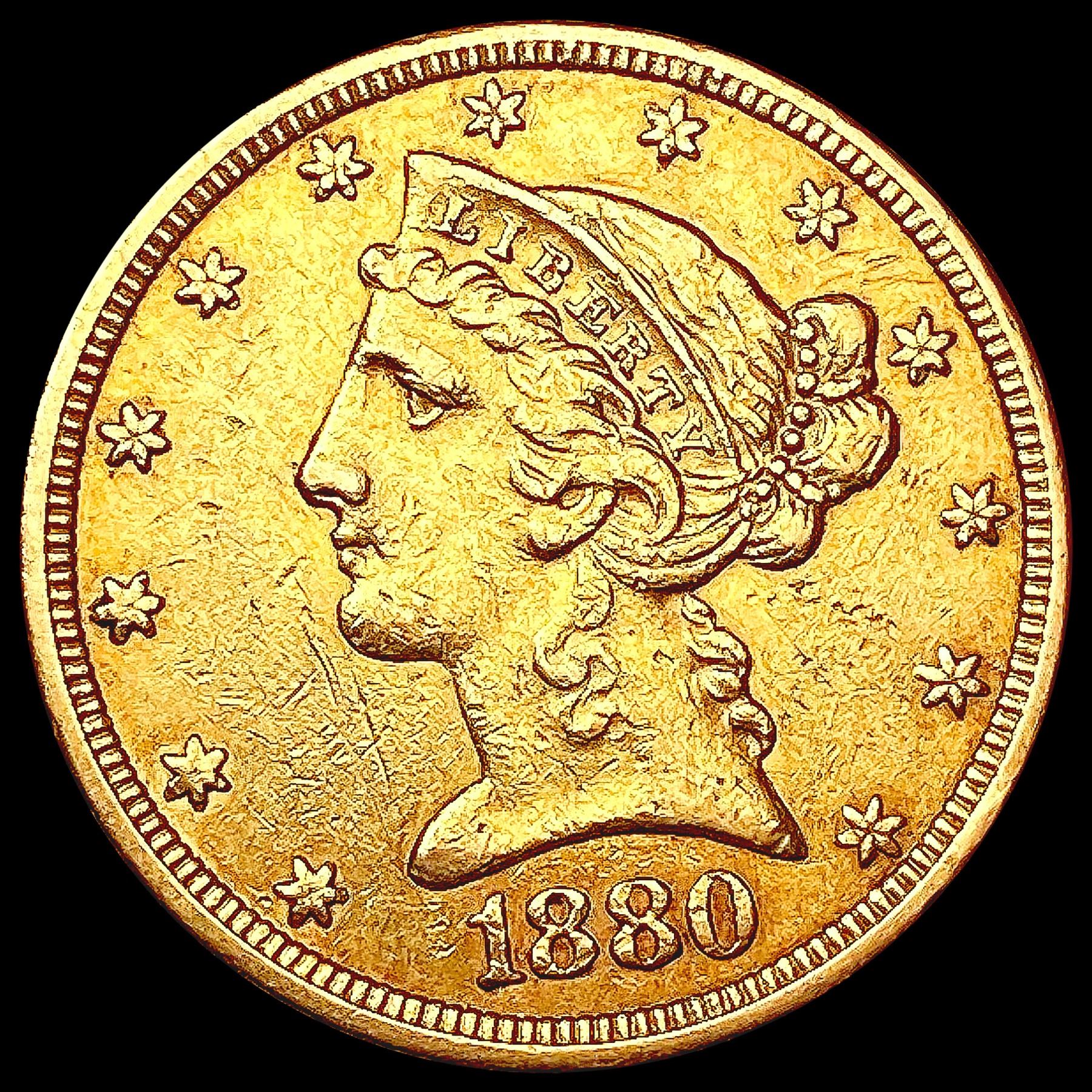 1880 $5 Gold Half Eagle CLOSELY UNCIRCULATED