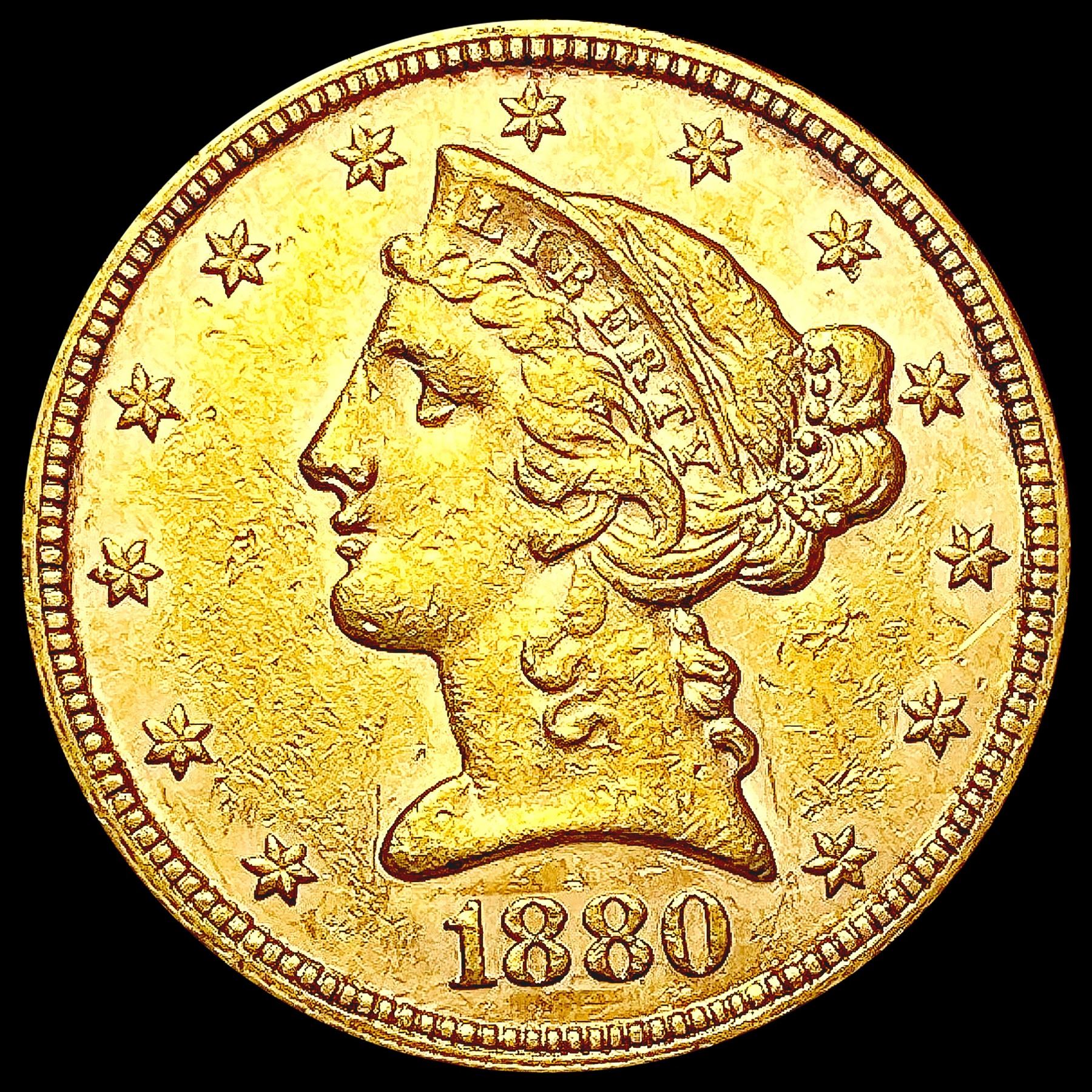 1880 $5 Gold Half Eagle CLOSELY UNCIRCULATED