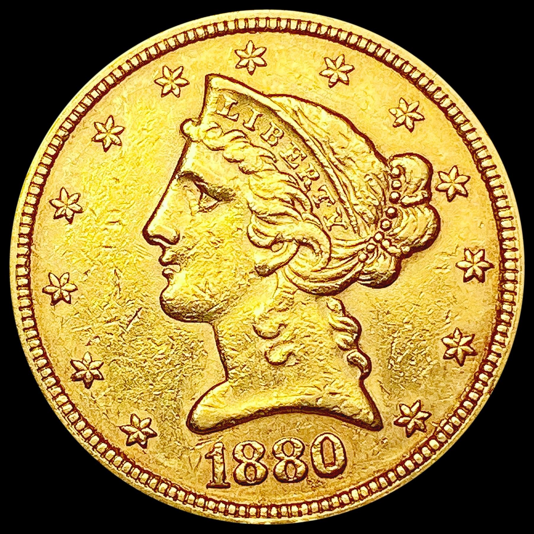 1880 $5 Gold Half Eagle CLOSELY UNCIRCULATED