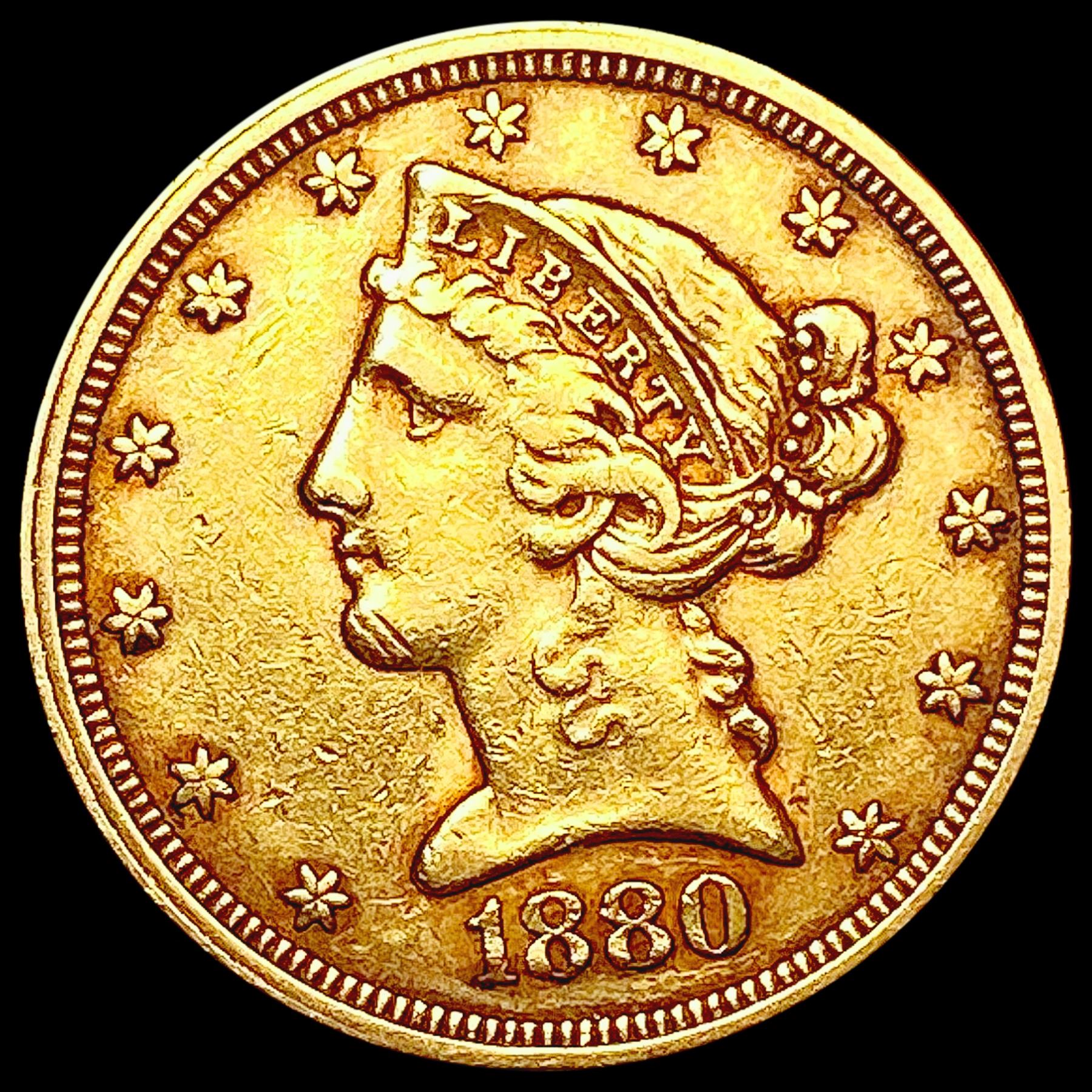 1880 $5 Gold Half Eagle CLOSELY UNCIRCULATED