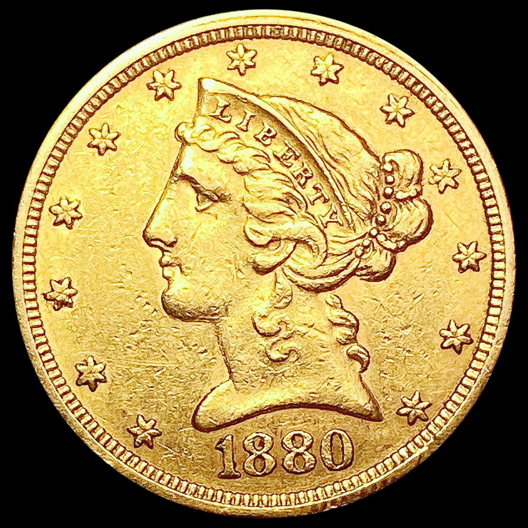 1880 $5 Gold Half Eagle CLOSELY UNCIRCULATED