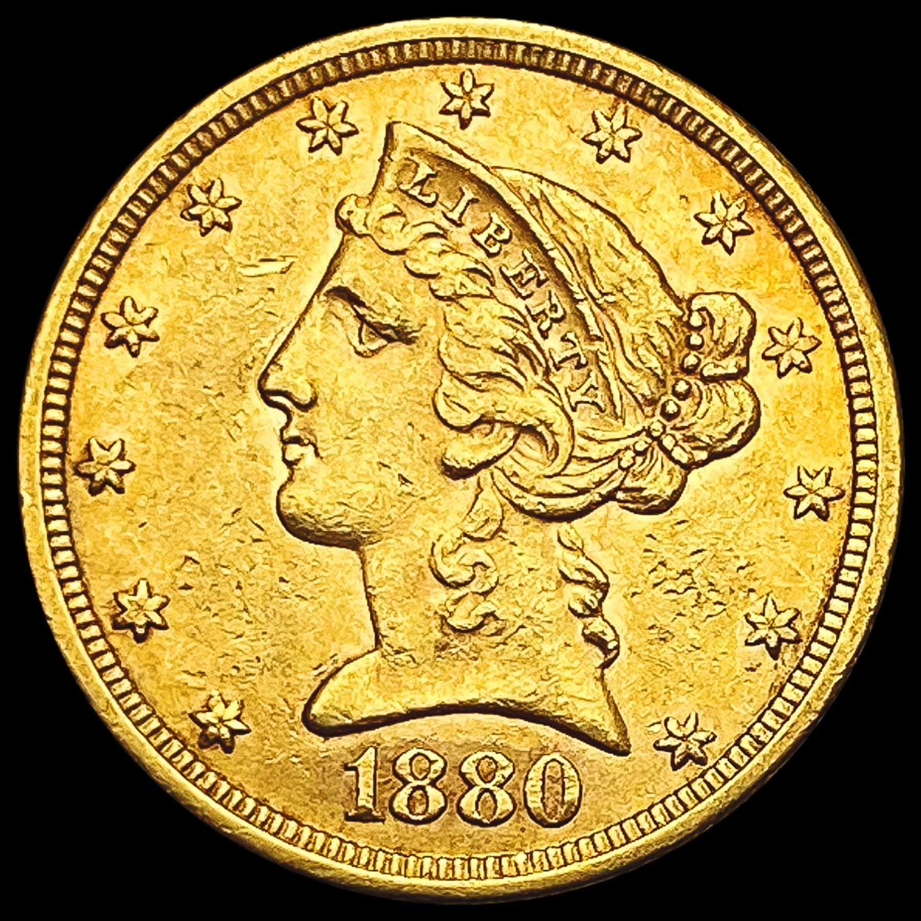 1880 $5 Gold Half Eagle CLOSELY UNCIRCULATED