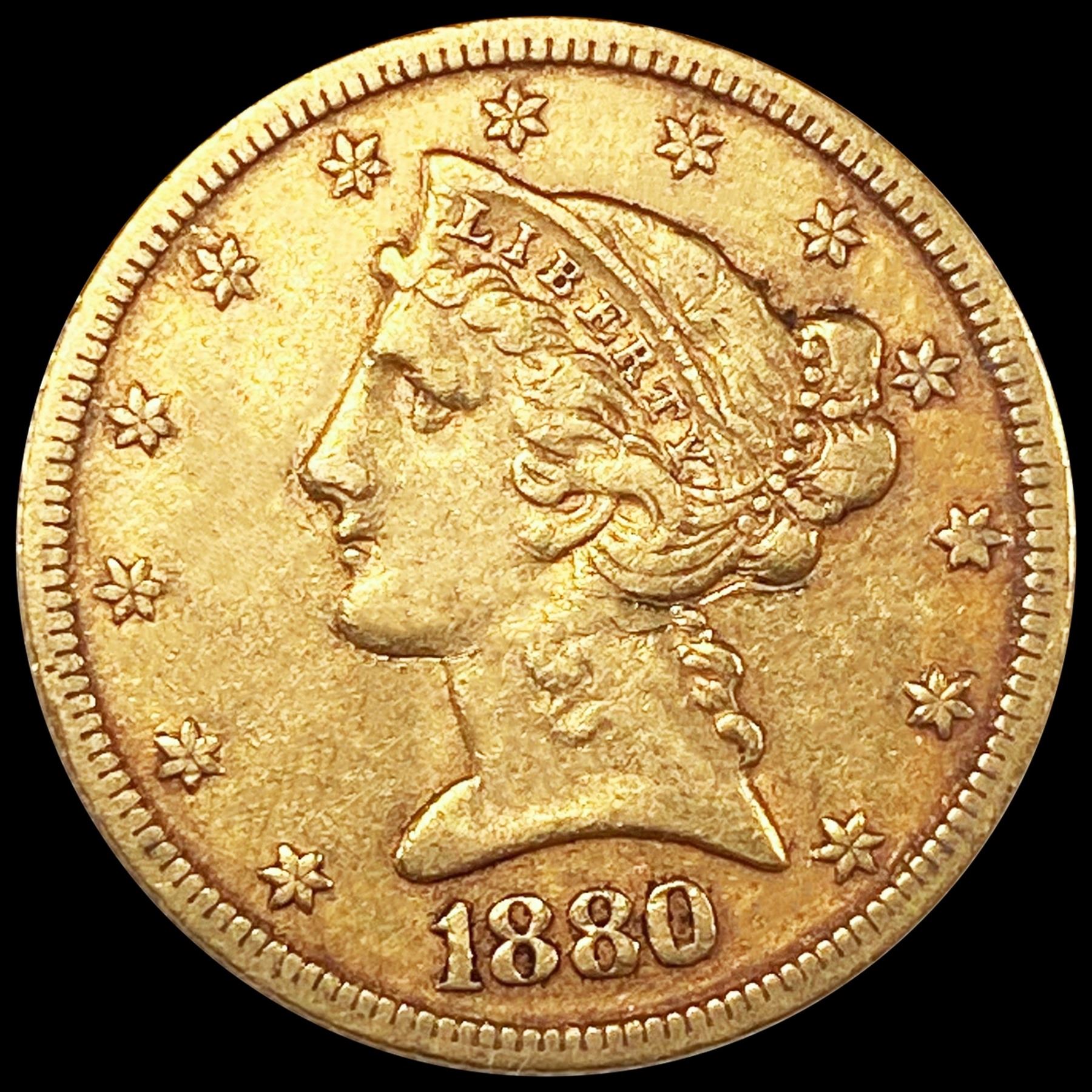 1880 $5 Gold Half Eagle LIGHTLY CIRCULATED