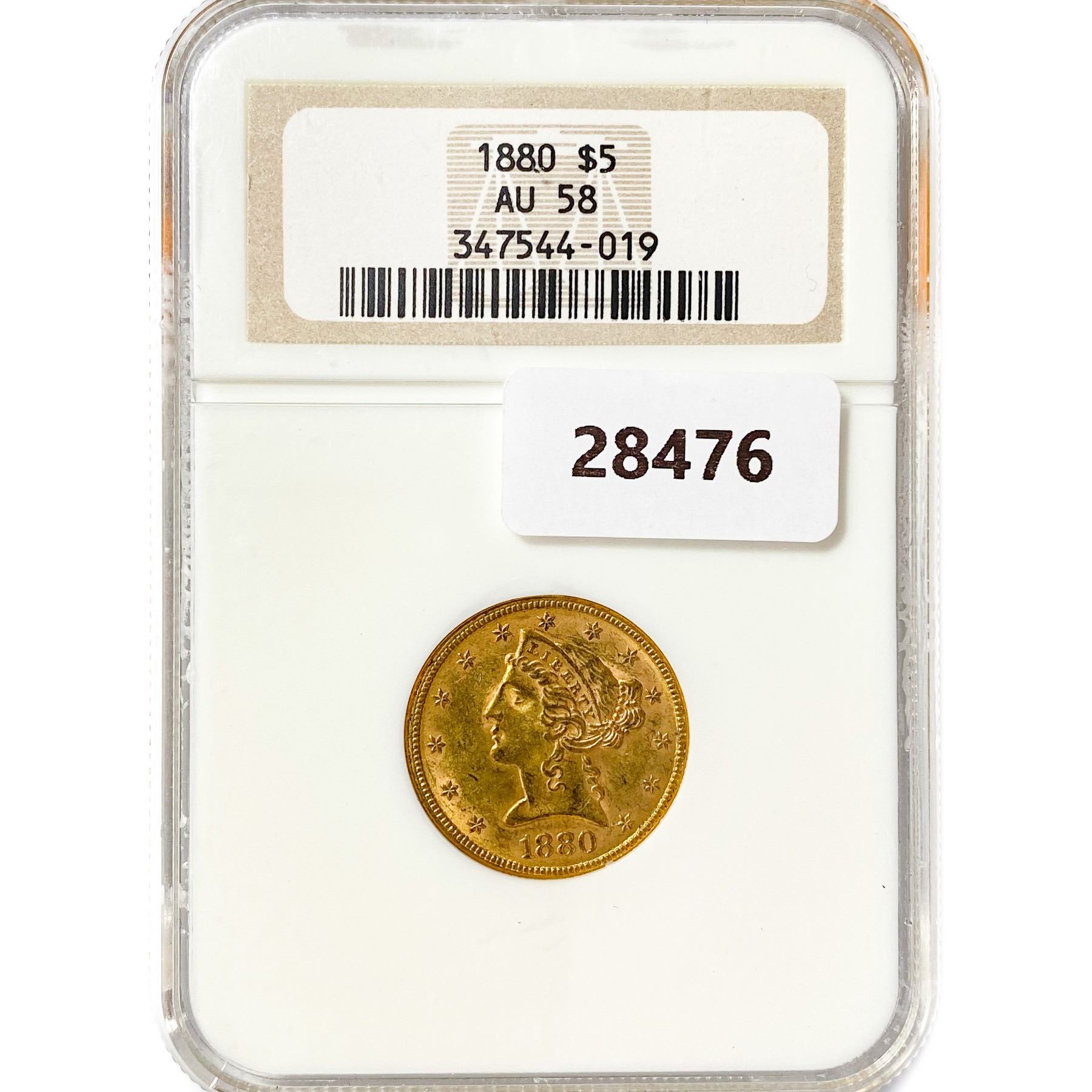 1880 $5 Gold Half Eagle NGC AU58