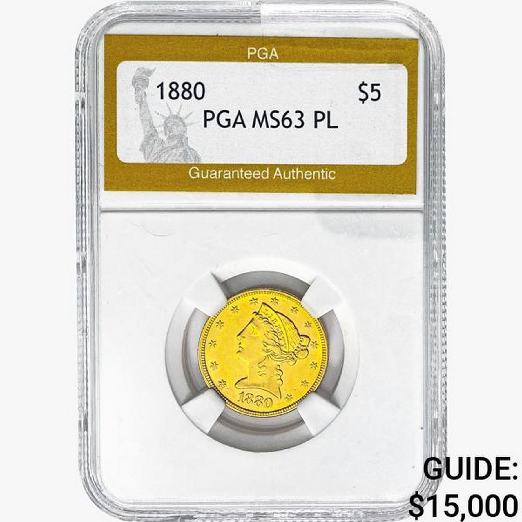 1880 $5 Gold Half Eagle PGA MS63 PL