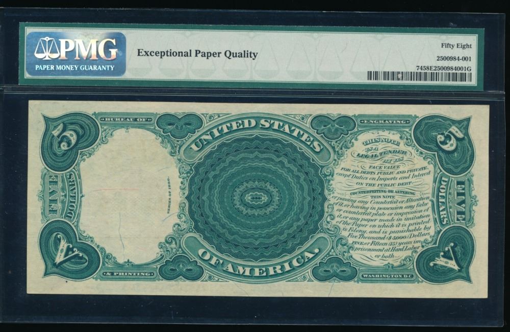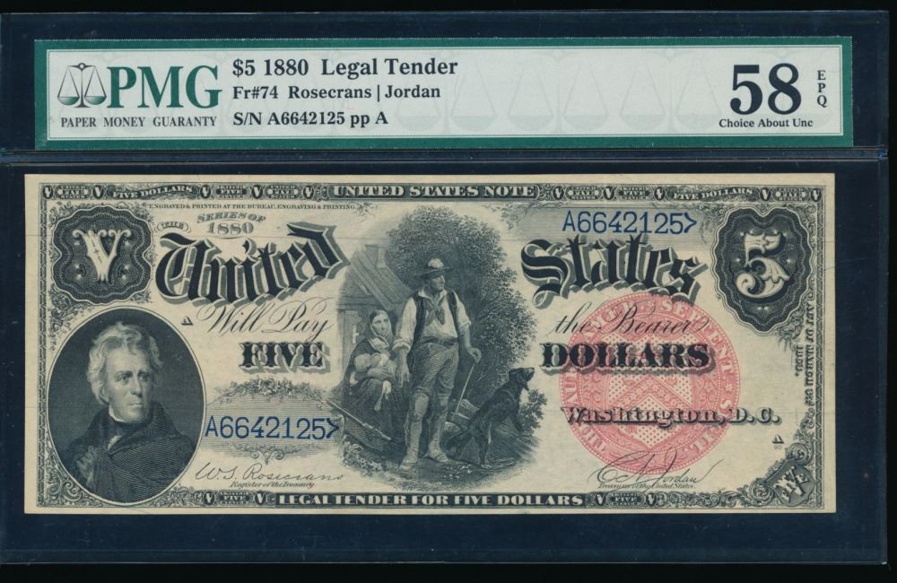 One 1880 $5 Legal Tender Note PMG 58EPQ.